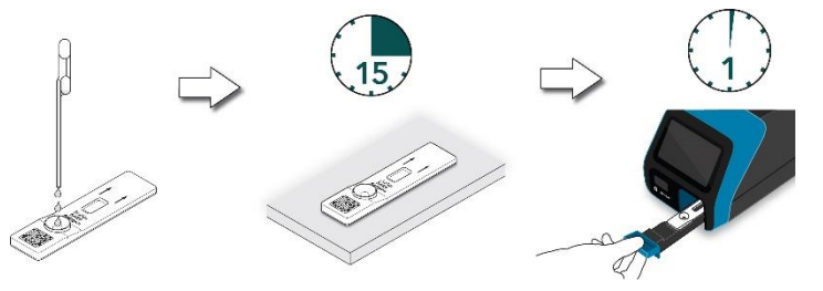 In READ NOW mode the user inoculates the Test Cassette (Quality Control sample applied to Test Cassette) then places the Test Cassette onto the counter or bench top for 15 minutes (outside of Sofia 2). The user manually times this development step. The Test Cassette MUST remain on the bench for 15 minutes to get an accurate result. Then, the user inserts the Test Cassette into Sofia 2. In READ NOW Mode, Sofia 2 will scan and display the test result within 1 minute. Warning: Results must not be interpreted past 30 minutes after inoculation. Using the Sofia past this time may result in false results. READ NOW mode is great for batch processing - if you have multiple test casseettes developing outside Sofia 2 and allows you to process each cassette quickly one after the other