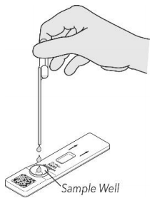 Firmly squeeze the top bulb to empty the contents of the Small, Clear 120 µL Fixed Volume Pipette into the Test Cassette sample well. Extra liquid in the overflow bulb is OK.