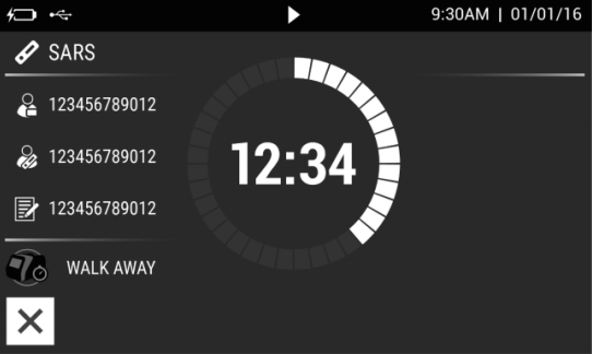 This example shows the test in WALK AWAY Mode has 12 minutes, 34 seconds remaining. Sofia 2 will read and display the results between 3 and 15 minutes.