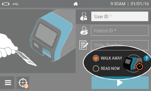 In WALK AWAY Mode, the user inoculates the Test Cassette (Patient sample applied to Test Cassette) and immediately inserts the Test Cassette into Sofia 2. Positive and negative test results will be displayed at 15 minutes. WALK AWAY mode is great if you have a single test cassette and want Sofia 2 to time development of and automatically provide the cassette test results.