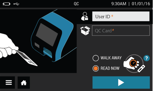 En mode READ NOW (immédiat) l’utilisateur inocule la Cassette Test (le Contôle de Qualité est appliqué sur la Cassette Test) et place ensuite la Cassette Test sur le paillasse ou la surface de travail pour 15 minutes (hors du Sofia 2). L’utilisateur chronomètre manuellement l'étape de développement. La Cassette Test DOIT demeurer sur la surface de travail 15 minutes pour obtenir un résultat précis. Ensuite, l’utilisateur insert la Cassette Test dans l’appareil Sofia 2. En mode READ NOW, l’appareil Sofia 2 analyse et affiche le résultat en moins d’une minute. Attention: Les résultats ne doivent pas être interprétés après plus de 30 minutes suivant l’inoculation. L’utilisation des tests Sofia après ce délai pourrait entrainer de faux résultats. Le mode READ NOW est parfait pour le traitement en lot - si vous avez plusieurs cassettes test en développement à l’extérieur de l’appareil Sofia 2, vous pouvez ensuite lire rapidement chaque cassette une après l’autre.
