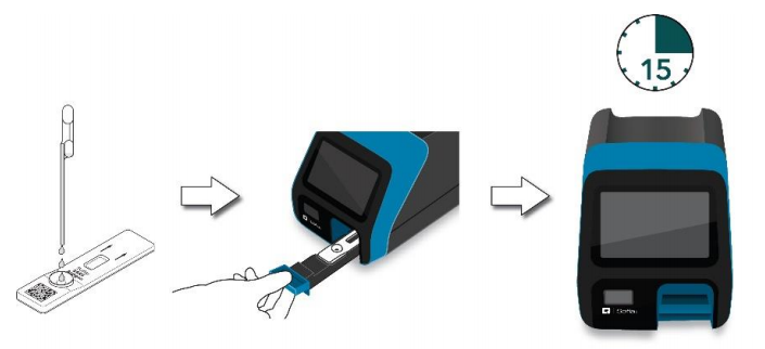 En mode WALK AWAY (différé), l’utilisateur inocule la Cassette Test (le Contrôle de Qualité est appliqué sur la Cassette Test) et insert immédiatement la Cassette Test dans l’appareil Sofia 2. Les résultats positifs et négatif seront affichés après 15 minutes. Le mode WALK AWAY est parfait si vous avez une seule cassette test et que vous voulez de l’appareil Sofia 2 chronomètre le temps développement et donne le résultat de la cassette test automatiquement.