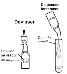 REMARQUE: ne pas verser l'échantillon du tube de réactif. Utiliser la petite pipette transparente à volume fixe de 120 µl.