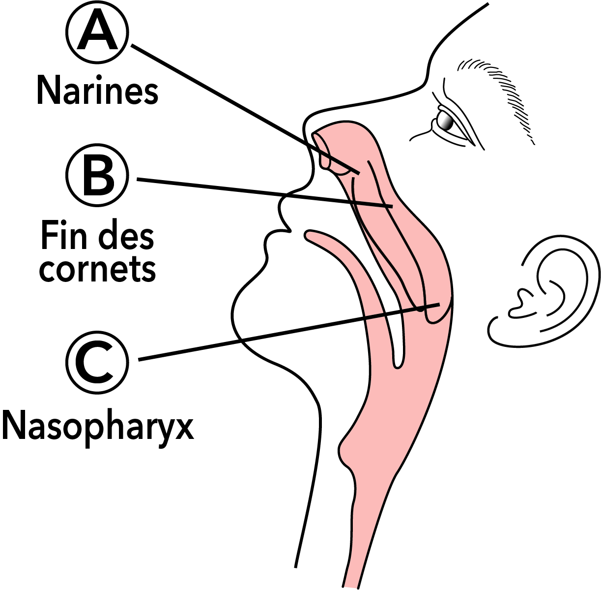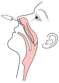 - Garder l'écouvillon près du plancher de la cavité nasal tout en le poussant dans le nasopharynx postérieur.